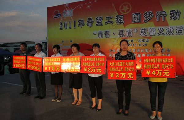 2011年石嘴山市參加高考的學(xué)生取得了驕人的成績,一大批學(xué)子將邁進(jìn)理想的學(xué)堂,但其中部分優(yōu)秀大學(xué)新生因家庭貧困而無力負(fù)擔(dān)高額的學(xué)費。為幫助即將進(jìn)入大學(xué)的經(jīng)濟(jì)困難學(xué)生解決實際困難,石嘴山市團(tuán)委積極開展愛心圓夢大學(xué)行動,聯(lián)系社會愛心人士扶貧濟(jì)困。在獲悉這一情況后,我集團(tuán)公司董事長李萍決定在石嘴山市團(tuán)委主辦的“奉獻(xiàn)愛心、圓夢大學(xué)” 慈善基金募捐活動上捐款2萬元,用于救助急需幫助的大學(xué)新生們。通達(dá)集團(tuán)充分發(fā)揚手牽手、心連心的傳統(tǒng),為慈善事業(yè)出一份力、添一塊磚,用實際行動回報社會。